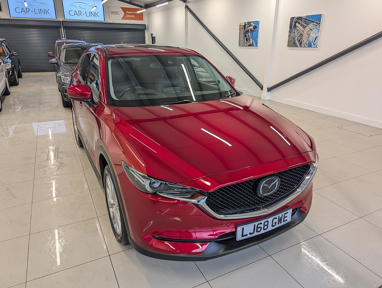 Car-Link are excited to offer this lovely Mazda CX-5 2.0 SKYACTIV-G Sport Nav+ SUV 5dr Petrol Manual Euro 6 (s/s) (165 ps). This example comes complimented with FULL Mazda + 2 Service History, x2 keys, Floor Mats and Full Euro 6 Compliance. Specification includes Multi-Function Steering Wheel, Cruise Control, Automatic Headlights, Automatic Windscreen Wipers, Lane Keep Assist, Auto Hold Handbrake, Heated and Electronically Adjustable Front Seat, Heated Steering Wheel, Head Up Display, Apple Carplay/Android Auto, Fm/Am/Dab Radio, Bluetooth Media and Telephone Connection, Satellite Navigation, 360 Camera, Blind Spot Assistance Panoramic Sun Roof and more. Part exchange welcome. Buy with confidence from an RAC approved dealer.