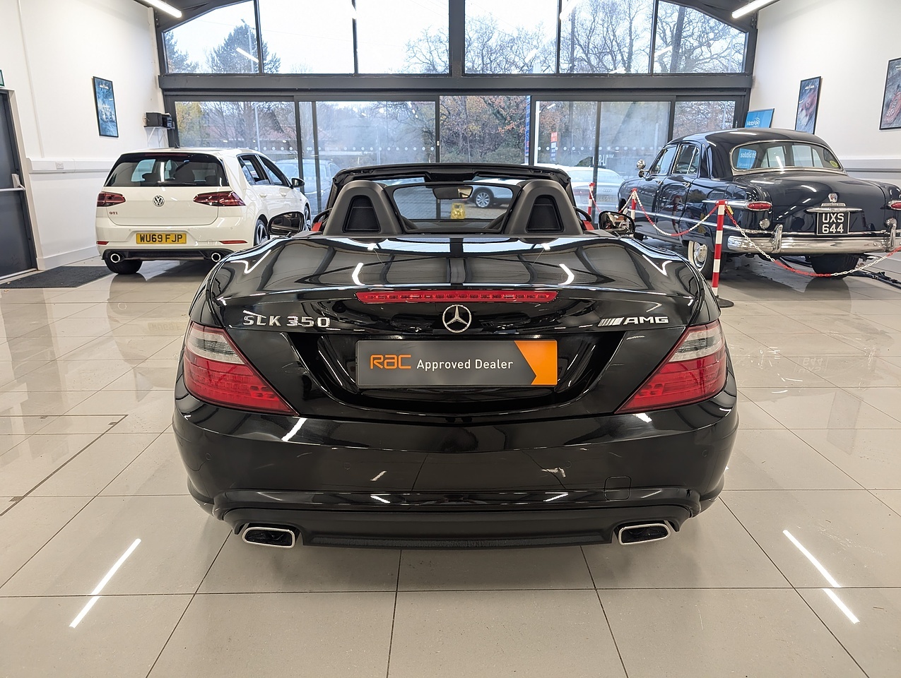 Car-Link are excited to offer this stunning Mercedes-Benz SLK 3.5 SLK350 BlueEfficiency AMG Sport Convertible 2dr Petrol G-Tronic+ Euro 5 (s/s) (306 ps). This pristine example comes complimented with Full Service History, x2 Keys and only 37k miles from new. Specification includes Multi-Function Steering Wheel, Cruise Control, Automatic Headlights, Automatic Climate Control with Air Conditioning, Heated Front Seats, Panoramic Vario Roof, Parktronic - Front and Rear with Parking Guidance, Ambient Lighting - Solar red, Media Interface, Satellite Navigation, Fm/Am/Dab Radio and more. Part exchange welcome. Buy with confidence from an RAC approved dealer.